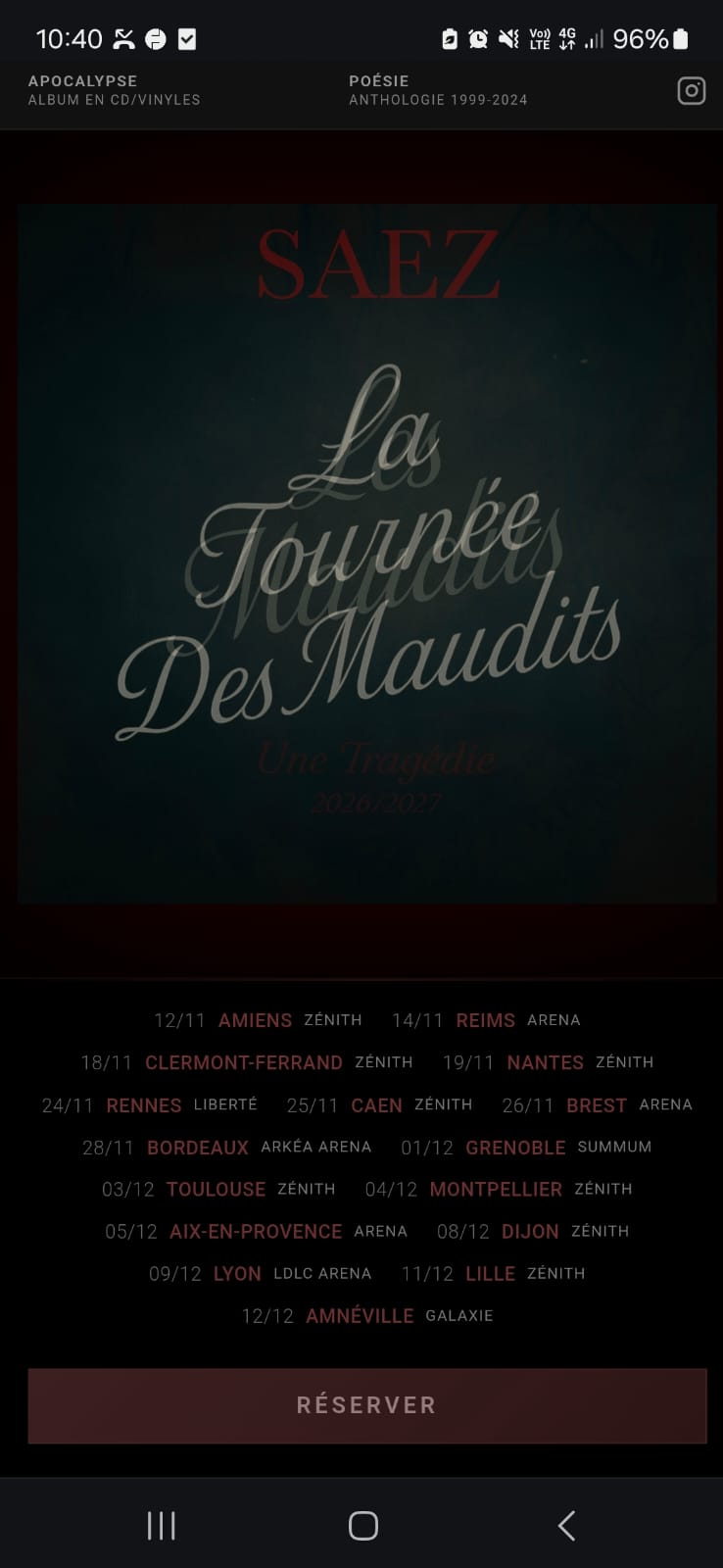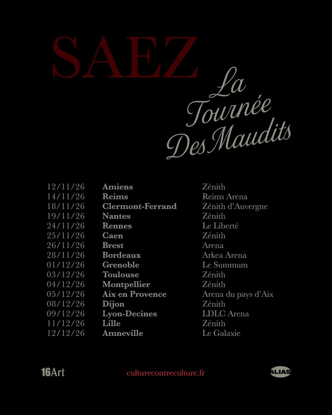 Dates de la tournée Les Maudits :
