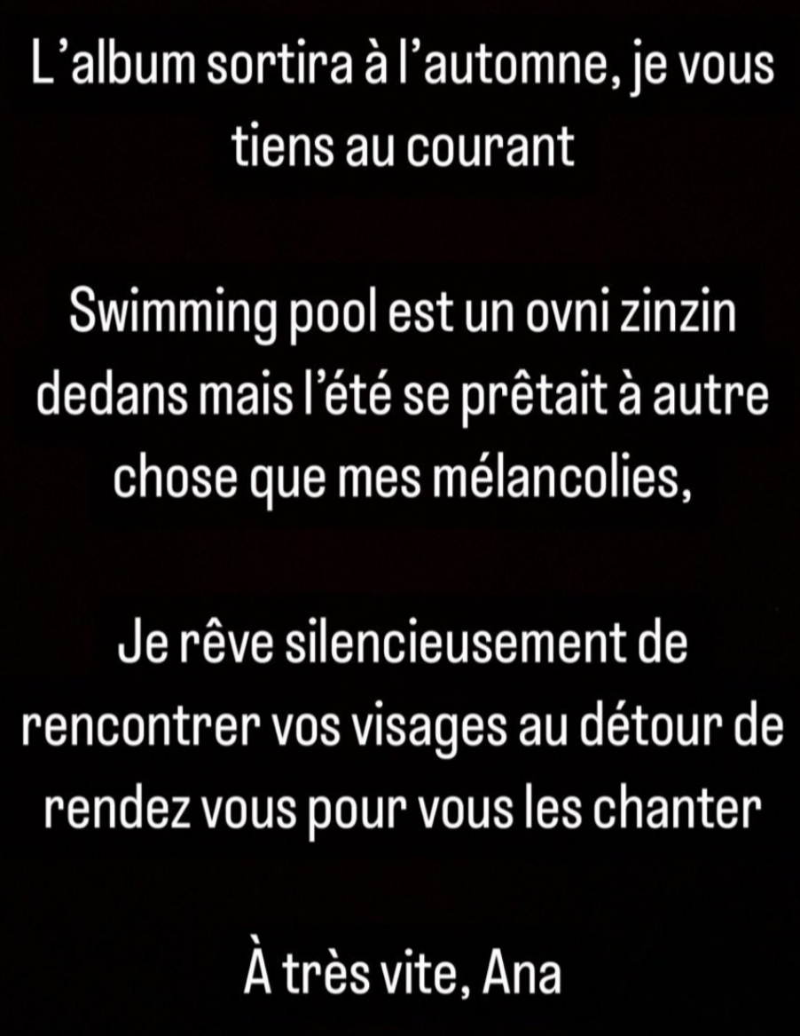Moi je dis Ana c'est l'interprète de Damien.__Marine__ a écrit : ↑29 mai 2023 18:16Ce n'est pas parce qu'il est sûrement derrière le projet d'Ana qu'il lui fait tout et qu'il pense/imagine/créé à sa place hein...