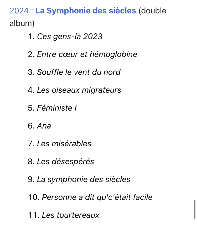Bof ce sont juste les textes qu’il y a dans les recueils. De là à ce que ça se retrouve en chansons dans les albums il y a un monde (je l’espère de tout mon cœur, vraiment).